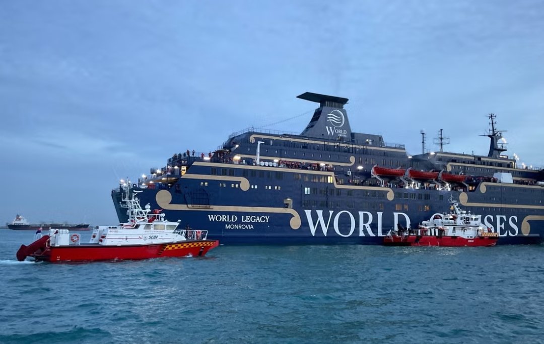 BATAM, — Kapal pesiar World Legacy, terbakar di Singapura,pada Jumat (20/2/2026). Seorang WNI tewas akibat kejadian ini.