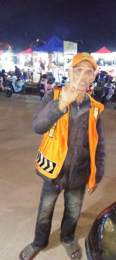 ( Foto : Almarhum Wendri saat menjadi juru parkir di zona C Taman Gurindam 12 )